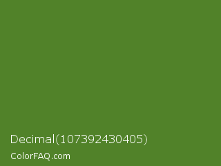 Decimal 107392430405 Color is a normal green color and the nearest color is Sap Green #507d2a. Hex code #518229 and RGB value is rgb(81,130,41). In RGB color space, this color is composed of 32% red, 51% green, 16% blue, In CMYK color space, this color is composed of 38% cyan, 0% magenta, 68% yellow , 49% black , In HSL color space, this color has a hue angle of 93° , 52% saturation and 34% lightness.