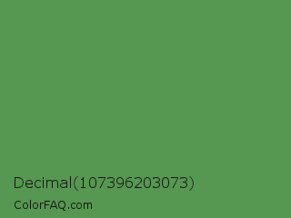 Decimal 107396203073 Color is a normal green color and the nearest color is Fruit Salad #4f9d5d. Hex code #569751 and RGB value is rgb(86,151,81). In RGB color space, this color is composed of 34% red, 59% green, 32% blue, In CMYK color space, this color is composed of 43% cyan, 0% magenta, 46% yellow , 41% black , In HSL color space, this color has a hue angle of 116° , 30% saturation and 45% lightness.