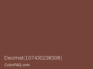 Decimal 107430238308 Color is a normal red color and the nearest color is Medium Tuscan Red #79443b. Hex code #764338 and RGB value is rgb(118,67,56). In RGB color space, this color is composed of 46% red, 26% green, 22% blue, In CMYK color space, this color is composed of 0% cyan, 43% magenta, 53% yellow , 54% black , In HSL color space, this color has a hue angle of 11° , 36% saturation and 34% lightness.