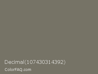 Decimal 107430314392 Color is a normal yellow color and the nearest color is Pablo #776f61. Hex code #767366 and RGB value is rgb(118,115,102). In RGB color space, this color is composed of 46% red, 45% green, 40% blue, In CMYK color space, this color is composed of 0% cyan, 3% magenta, 14% yellow , 54% black , In HSL color space, this color has a hue angle of 49° , 7% saturation and 43% lightness.