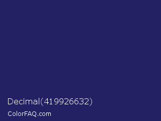 Decimal 419926632 Color is a dark indigo color and the nearest color is Lucky Point #1a1a68. Hex code #232064 and RGB value is rgb(35,32,100). In RGB color space, this color is composed of 14% red, 13% green, 39% blue, In CMYK color space, this color is composed of 65% cyan, 68% magenta, 0% yellow , 61% black , In HSL color space, this color has a hue angle of 243° , 52% saturation and 26% lightness.