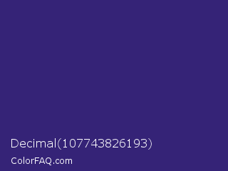 Decimal 107743826193 Color is a dark indigo color and the nearest color is Meteorite #3c1f76. Hex code #352377 and RGB value is rgb(53,35,119). In RGB color space, this color is composed of 21% red, 14% green, 47% blue, In CMYK color space, this color is composed of 55% cyan, 71% magenta, 0% yellow , 53% black , In HSL color space, this color has a hue angle of 253° , 55% saturation and 30% lightness.