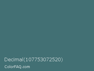 Decimal 107753072520 Color is a normal cyan color and the nearest color is Faded Jade #427977. Hex code #427074 and RGB value is rgb(66,112,116). In RGB color space, this color is composed of 26% red, 44% green, 45% blue, In CMYK color space, this color is composed of 43% cyan, 3% magenta, 0% yellow , 55% black , In HSL color space, this color has a hue angle of 185° , 27% saturation and 36% lightness.