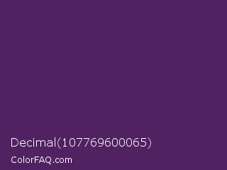 Decimal 107769600065 Color is a dark purple color and the nearest color is Bossanova #4e2a5a. Hex code #512261 and RGB value is rgb(81,34,97). In RGB color space, this color is composed of 32% red, 13% green, 38% blue, In CMYK color space, this color is composed of 16% cyan, 65% magenta, 0% yellow , 62% black , In HSL color space, this color has a hue angle of 285° , 48% saturation and 26% lightness.