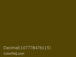 Decimal 107778476115 Color is a very dark yellow color and the nearest color is Bronze Olive #4e420c. Hex code #554505 and RGB value is rgb(85,69,5). In RGB color space, this color is composed of 33% red, 27% green, 2% blue, In CMYK color space, this color is composed of 0% cyan, 19% magenta, 94% yellow , 67% black , In HSL color space, this color has a hue angle of 48° , 89% saturation and 18% lightness.