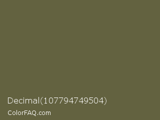Decimal 107794749504 Color is a normal yellow color and the nearest color is Hemlock #5e5d3b. Hex code #636240 and RGB value is rgb(99,98,64). In RGB color space, this color is composed of 39% red, 38% green, 25% blue, In CMYK color space, this color is composed of 0% cyan, 1% magenta, 35% yellow , 61% black , In HSL color space, this color has a hue angle of 58° , 21% saturation and 32% lightness.