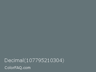 Decimal 107795210304 Color is a normal cyan color and the nearest color is Nevada #646e75. Hex code #647478 and RGB value is rgb(100,116,120). In RGB color space, this color is composed of 39% red, 45% green, 47% blue, In CMYK color space, this color is composed of 17% cyan, 3% magenta, 0% yellow , 53% black , In HSL color space, this color has a hue angle of 192° , 9% saturation and 43% lightness.