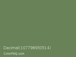 Decimal 107798950514 Color is a normal green color and the nearest color is Glade Green #61845f. Hex code #698258 and RGB value is rgb(105,130,88). In RGB color space, this color is composed of 41% red, 51% green, 35% blue, In CMYK color space, this color is composed of 19% cyan, 0% magenta, 32% yellow , 49% black , In HSL color space, this color has a hue angle of 96° , 19% saturation and 43% lightness.