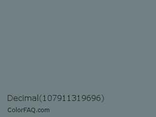 Decimal 107911319696 Color is a normal cyan color and the nearest color is Sirocco #718080. Hex code #718082 and RGB value is rgb(113,128,130). In RGB color space, this color is composed of 44% red, 50% green, 51% blue, In CMYK color space, this color is composed of 13% cyan, 2% magenta, 0% yellow , 49% black , In HSL color space, this color has a hue angle of 187° , 7% saturation and 48% lightness.