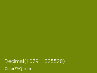 Decimal 107911325528 Color is a dark yellow color and the nearest color is Olive #808000. Hex code #718706 and RGB value is rgb(113,135,6). In RGB color space, this color is composed of 44% red, 53% green, 2% blue, In CMYK color space, this color is composed of 16% cyan, 0% magenta, 96% yellow , 47% black , In HSL color space, this color has a hue angle of 70° , 91% saturation and 28% lightness.