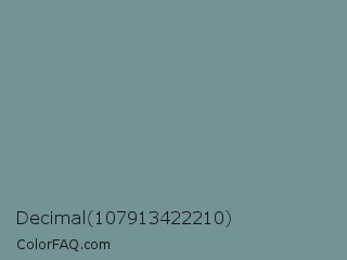 Decimal 107913422210 Color is a normal cyan color and the nearest color is Juniper #6d9292. Hex code #749396 and RGB value is rgb(116,147,150). In RGB color space, this color is composed of 45% red, 58% green, 59% blue, In CMYK color space, this color is composed of 23% cyan, 2% magenta, 0% yellow , 41% black , In HSL color space, this color has a hue angle of 185° , 14% saturation and 52% lightness.