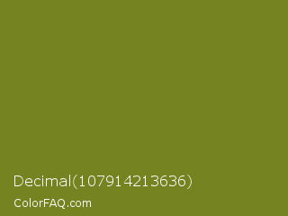 Decimal 107914213636 Color is a normal yellow color and the nearest color is Pacifika #778120. Hex code #758320 and RGB value is rgb(117,131,32). In RGB color space, this color is composed of 46% red, 51% green, 13% blue, In CMYK color space, this color is composed of 11% cyan, 0% magenta, 76% yellow , 49% black , In HSL color space, this color has a hue angle of 68° , 61% saturation and 32% lightness.