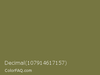 Decimal 107914617157 Color is a normal yellow color and the nearest color is Go Ben #726d4e. Hex code #767641 and RGB value is rgb(118,118,65). In RGB color space, this color is composed of 46% red, 46% green, 25% blue, In CMYK color space, this color is composed of 0% cyan, 0% magenta, 45% yellow , 54% black , In HSL color space, this color has a hue angle of 60° , 29% saturation and 36% lightness.