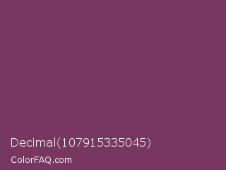 Decimal 107915335045 Color is a normal magenta color and the nearest color is Cosmic #76395d. Hex code #773761 and RGB value is rgb(119,55,97). In RGB color space, this color is composed of 47% red, 22% green, 38% blue, In CMYK color space, this color is composed of 0% cyan, 54% magenta, 18% yellow , 53% black , In HSL color space, this color has a hue angle of 321° , 37% saturation and 34% lightness.