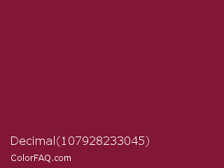 Decimal 107928233045 Color is a dark rose color and the nearest color is Claret #7f1734. Hex code #811637 and RGB value is rgb(129,22,55). In RGB color space, this color is composed of 51% red, 9% green, 22% blue, In CMYK color space, this color is composed of 0% cyan, 83% magenta, 57% yellow , 49% black , In HSL color space, this color has a hue angle of 341° , 71% saturation and 30% lightness.