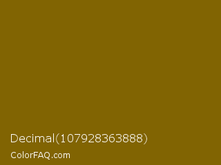 Decimal 107928363888 Color is a dark yellow color and the nearest color is Yukon Gold #7b6608. Hex code #816402 and RGB value is rgb(129,100,2). In RGB color space, this color is composed of 51% red, 39% green, 1% blue, In CMYK color space, this color is composed of 0% cyan, 22% magenta, 98% yellow , 49% black , In HSL color space, this color has a hue angle of 46° , 97% saturation and 26% lightness.
