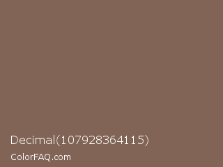 Decimal 107928364115 Color is a normal orange color and the nearest color is Pastel Brown #836953. Hex code #816455 and RGB value is rgb(129,100,85). In RGB color space, this color is composed of 51% red, 39% green, 33% blue, In CMYK color space, this color is composed of 0% cyan, 22% magenta, 34% yellow , 49% black , In HSL color space, this color has a hue angle of 20° , 21% saturation and 42% lightness.