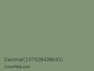 Decimal 107928438643 Color is a normal green color and the nearest color is Battleship Gray #828f72. Hex code #819475 and RGB value is rgb(129,148,117). In RGB color space, this color is composed of 51% red, 58% green, 46% blue, In CMYK color space, this color is composed of 13% cyan, 0% magenta, 21% yellow , 42% black , In HSL color space, this color has a hue angle of 97° , 13% saturation and 52% lightness.