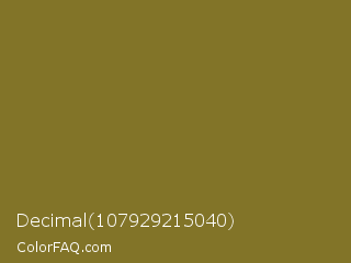 Decimal 107929215040 Color is a normal yellow color and the nearest color is Spanish Bistre #807532. Hex code #827428 and RGB value is rgb(130,116,40). In RGB color space, this color is composed of 51% red, 45% green, 16% blue, In CMYK color space, this color is composed of 0% cyan, 11% magenta, 69% yellow , 49% black , In HSL color space, this color has a hue angle of 51° , 53% saturation and 33% lightness.