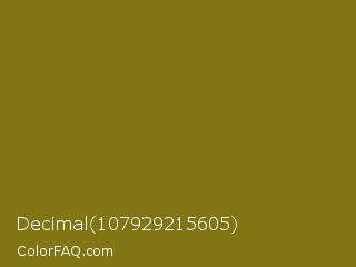 Decimal 107929215605 Color is a dark yellow color and the nearest color is Corn Harvest #8b6b0b. Hex code #827513 and RGB value is rgb(130,117,19). In RGB color space, this color is composed of 51% red, 46% green, 7% blue, In CMYK color space, this color is composed of 0% cyan, 10% magenta, 85% yellow , 49% black , In HSL color space, this color has a hue angle of 53° , 74% saturation and 29% lightness.