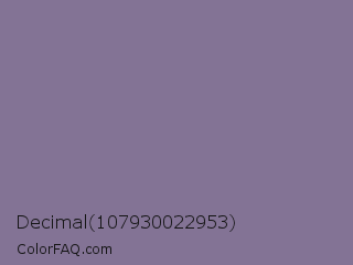 Decimal 107930022953 Color is a normal violet color and the nearest color is Waterloo #7b7c94. Hex code #837395 and RGB value is rgb(131,115,149). In RGB color space, this color is composed of 51% red, 45% green, 58% blue, In CMYK color space, this color is composed of 12% cyan, 23% magenta, 0% yellow , 42% black , In HSL color space, this color has a hue angle of 268° , 14% saturation and 52% lightness.