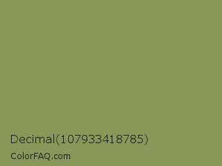 Decimal 107933418785 Color is a normal lime color and the nearest color is Moss Green #8a9a5b. Hex code #889859 and RGB value is rgb(136,152,89). In RGB color space, this color is composed of 53% red, 60% green, 35% blue, In CMYK color space, this color is composed of 11% cyan, 0% magenta, 41% yellow , 40% black , In HSL color space, this color has a hue angle of 75° , 26% saturation and 47% lightness.