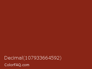 Decimal 107933664592 Color is a normal red color and the nearest color is Kobe #882d17. Hex code #892516 and RGB value is rgb(137,37,22). In RGB color space, this color is composed of 54% red, 15% green, 9% blue, In CMYK color space, this color is composed of 0% cyan, 73% magenta, 84% yellow , 46% black , In HSL color space, this color has a hue angle of 8° , 72% saturation and 31% lightness.