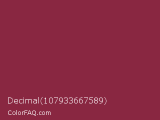 Decimal 107933667589 Color is a normal rose color and the nearest color is Solid Pink #893843. Hex code #892741 and RGB value is rgb(137,39,65). In RGB color space, this color is composed of 54% red, 15% green, 25% blue, In CMYK color space, this color is composed of 0% cyan, 72% magenta, 53% yellow , 46% black , In HSL color space, this color has a hue angle of 344° , 56% saturation and 35% lightness.