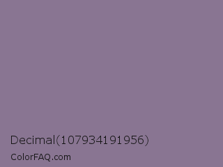 Decimal 107934191956 Color is a normal purple color and the nearest color is Mamba #8e8190. Hex code #897592 and RGB value is rgb(137,117,146). In RGB color space, this color is composed of 54% red, 46% green, 57% blue, In CMYK color space, this color is composed of 6% cyan, 20% magenta, 0% yellow , 43% black , In HSL color space, this color has a hue angle of 281° , 12% saturation and 52% lightness.