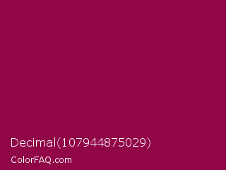 Decimal 107944875029 Color is a dark rose color and the nearest color is Rose Bud Cherry #800b47. Hex code #900647 and RGB value is rgb(144,6,71). In RGB color space, this color is composed of 56% red, 2% green, 28% blue, In CMYK color space, this color is composed of 0% cyan, 96% magenta, 51% yellow , 44% black , In HSL color space, this color has a hue angle of 332° , 92% saturation and 29% lightness.