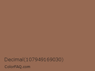 Decimal 107949169030 Color is a normal orange color and the nearest color is Leather #967059. Hex code #966952 and RGB value is rgb(150,105,82). In RGB color space, this color is composed of 59% red, 41% green, 32% blue, In CMYK color space, this color is composed of 0% cyan, 30% magenta, 45% yellow , 41% black , In HSL color space, this color has a hue angle of 20° , 29% saturation and 45% lightness.