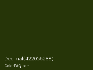 Decimal 422056288 Color is a very dark green color and the nearest color is Turtle Green #2a380b. Hex code #263508 and RGB value is rgb(38,53,8). In RGB color space, this color is composed of 15% red, 21% green, 3% blue, In CMYK color space, this color is composed of 28% cyan, 0% magenta, 85% yellow , 79% black , In HSL color space, this color has a hue angle of 80° , 74% saturation and 12% lightness.
