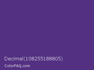 Decimal 108255188805 Color is a normal violet color and the nearest color is Regalia #522d80. Hex code #533081 and RGB value is rgb(83,48,129). In RGB color space, this color is composed of 33% red, 19% green, 51% blue, In CMYK color space, this color is composed of 36% cyan, 63% magenta, 0% yellow , 49% black , In HSL color space, this color has a hue angle of 266° , 46% saturation and 35% lightness.