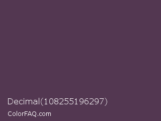 Decimal 108255196297 Color is a dark magenta color and the nearest color is Voodoo #533455. Hex code #533751 and RGB value is rgb(83,55,81). In RGB color space, this color is composed of 33% red, 22% green, 32% blue, In CMYK color space, this color is composed of 0% cyan, 34% magenta, 2% yellow , 67% black , In HSL color space, this color has a hue angle of 304° , 20% saturation and 27% lightness.