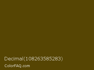 Decimal 108263585283 Color is a very dark yellow color and the nearest color is Bronze Olive #4e420c. Hex code #564503 and RGB value is rgb(86,69,3). In RGB color space, this color is composed of 34% red, 27% green, 1% blue, In CMYK color space, this color is composed of 0% cyan, 20% magenta, 97% yellow , 66% black , In HSL color space, this color has a hue angle of 48° , 93% saturation and 17% lightness.