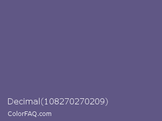 Decimal 108270270209 Color is a normal indigo color and the nearest color is Dolphin #646077. Hex code #605785 and RGB value is rgb(96,87,133). In RGB color space, this color is composed of 38% red, 34% green, 52% blue, In CMYK color space, this color is composed of 28% cyan, 35% magenta, 0% yellow , 48% black , In HSL color space, this color has a hue angle of 252° , 21% saturation and 43% lightness.