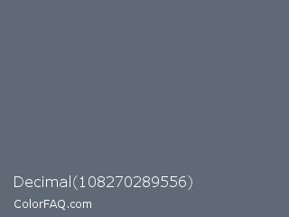 Decimal 108270289556 Color is a normal blue color and the nearest color is Shuttle Gray #5f6672. Hex code #606976 and RGB value is rgb(96,105,118). In RGB color space, this color is composed of 38% red, 41% green, 46% blue, In CMYK color space, this color is composed of 19% cyan, 11% magenta, 0% yellow , 54% black , In HSL color space, this color has a hue angle of 215° , 10% saturation and 42% lightness.