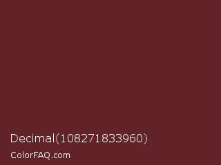 Decimal 108271833960 Color is a dark red color and the nearest color is Caput Mortuum #592720. Hex code #622328 and RGB value is rgb(98,35,40). In RGB color space, this color is composed of 38% red, 14% green, 16% blue, In CMYK color space, this color is composed of 0% cyan, 64% magenta, 59% yellow , 62% black , In HSL color space, this color has a hue angle of 355° , 47% saturation and 26% lightness.