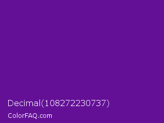 Decimal 108272230737 Color is a normal purple color and the nearest color is Purple #660099. Hex code #631097 and RGB value is rgb(99,16,151). In RGB color space, this color is composed of 39% red, 6% green, 59% blue, In CMYK color space, this color is composed of 34% cyan, 89% magenta, 0% yellow , 41% black , In HSL color space, this color has a hue angle of 277° , 81% saturation and 33% lightness.