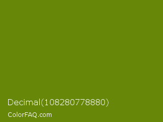 Decimal 108280778880 Color is a dark lime color and the nearest color is Avocado #568203. Hex code #668708 and RGB value is rgb(102,135,8). In RGB color space, this color is composed of 40% red, 53% green, 3% blue, In CMYK color space, this color is composed of 24% cyan, 0% magenta, 94% yellow , 47% black , In HSL color space, this color has a hue angle of 76° , 89% saturation and 28% lightness.