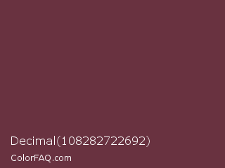 Decimal 108282722692 Color is a dark red color and the nearest color is Wine Dregs #673147. Hex code #693240 and RGB value is rgb(105,50,64). In RGB color space, this color is composed of 41% red, 20% green, 25% blue, In CMYK color space, this color is composed of 0% cyan, 52% magenta, 39% yellow , 59% black , In HSL color space, this color has a hue angle of 345° , 35% saturation and 30% lightness.