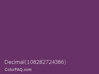 Decimal 108282724386 Color is a dark magenta color and the nearest color is Imperial #602f6b. Hex code #693266 and RGB value is rgb(105,50,102). In RGB color space, this color is composed of 41% red, 20% green, 40% blue, In CMYK color space, this color is composed of 0% cyan, 52% magenta, 3% yellow , 59% black , In HSL color space, this color has a hue angle of 303° , 35% saturation and 30% lightness.