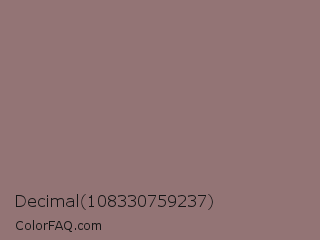 Decimal 108330759237 Color is a normal red color and the nearest color is Hemp #907874. Hex code #937475 and RGB value is rgb(147,116,117). In RGB color space, this color is composed of 58% red, 45% green, 46% blue, In CMYK color space, this color is composed of 0% cyan, 21% magenta, 20% yellow , 42% black , In HSL color space, this color has a hue angle of 358° , 13% saturation and 52% lightness.