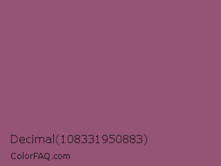 Decimal 108331950883 Color is a normal rose color and the nearest color is Sugar Plum #914e75. Hex code #955473 and RGB value is rgb(149,84,115). In RGB color space, this color is composed of 58% red, 33% green, 45% blue, In CMYK color space, this color is composed of 0% cyan, 44% magenta, 23% yellow , 42% black , In HSL color space, this color has a hue angle of 331° , 28% saturation and 46% lightness.