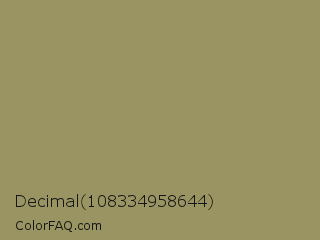 Decimal 108334958644 Color is a normal yellow color and the nearest color is Barley Corn #a68b5b. Hex code #999462 and RGB value is rgb(153,148,98). In RGB color space, this color is composed of 60% red, 58% green, 38% blue, In CMYK color space, this color is composed of 0% cyan, 3% magenta, 36% yellow , 40% black , In HSL color space, this color has a hue angle of 55° , 22% saturation and 49% lightness.