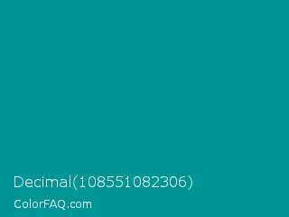Decimal 108551082306 Color is a dark cyan color and the nearest color is Viridian Green #009698. Hex code #019696 and RGB value is rgb(1,150,150). In RGB color space, this color is composed of 0% red, 59% green, 59% blue, In CMYK color space, this color is composed of 99% cyan, 0% magenta, 0% yellow , 41% black , In HSL color space, this color has a hue angle of 180° , 99% saturation and 30% lightness.