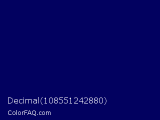Decimal 108551242880 Color is a very dark indigo color and the nearest color is Arapawa #110c6c. Hex code #020160 and RGB value is rgb(2,1,96). In RGB color space, this color is composed of 1% red, 0% green, 38% blue, In CMYK color space, this color is composed of 98% cyan, 99% magenta, 0% yellow , 62% black , In HSL color space, this color has a hue angle of 241° , 98% saturation and 19% lightness.