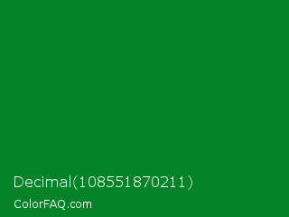 Decimal 108551870211 Color is a dark green color and the nearest color is La Salle Green #087830. Hex code #028327 and RGB value is rgb(2,131,39). In RGB color space, this color is composed of 1% red, 51% green, 15% blue, In CMYK color space, this color is composed of 98% cyan, 0% magenta, 70% yellow , 49% black , In HSL color space, this color has a hue angle of 137° , 97% saturation and 26% lightness.