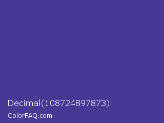 Decimal 108724897873 Color is a normal indigo color and the nearest color is Dark Slate Blue #483d8b. Hex code #473993 and RGB value is rgb(71,57,147). In RGB color space, this color is composed of 28% red, 22% green, 58% blue, In CMYK color space, this color is composed of 52% cyan, 61% magenta, 0% yellow , 42% black , In HSL color space, this color has a hue angle of 249° , 44% saturation and 40% lightness.