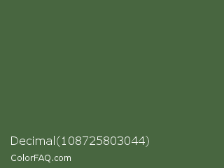 Decimal 108725803044 Color is a normal green color and the nearest color is Axolotl #4e6649. Hex code #486640 and RGB value is rgb(72,102,64). In RGB color space, this color is composed of 28% red, 40% green, 25% blue, In CMYK color space, this color is composed of 29% cyan, 0% magenta, 37% yellow , 60% black , In HSL color space, this color has a hue angle of 107° , 23% saturation and 33% lightness.